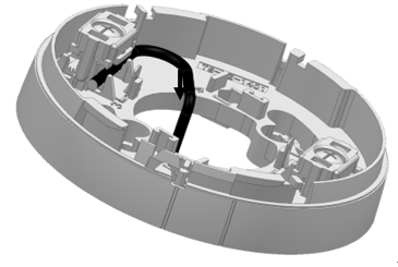探測器與底座上均有定位凹槽,使探測器具有唯一的安裝位置。待底座安裝牢固后,將探測器底部的凹槽C對準(zhǔn)底座凹槽A處,順時針旋轉(zhuǎn)至凹槽B處,即可將探測器安裝在底座上,見圖2。